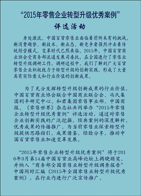 “2015年零售企業轉型升級優秀案例” 評選活動開啟